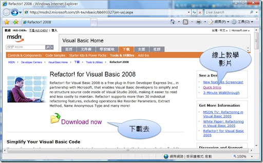 1. 開啟IE,連接到http://msdn2.microsoft.com/zh-tw/vbasic/bb693327(en-us).aspx